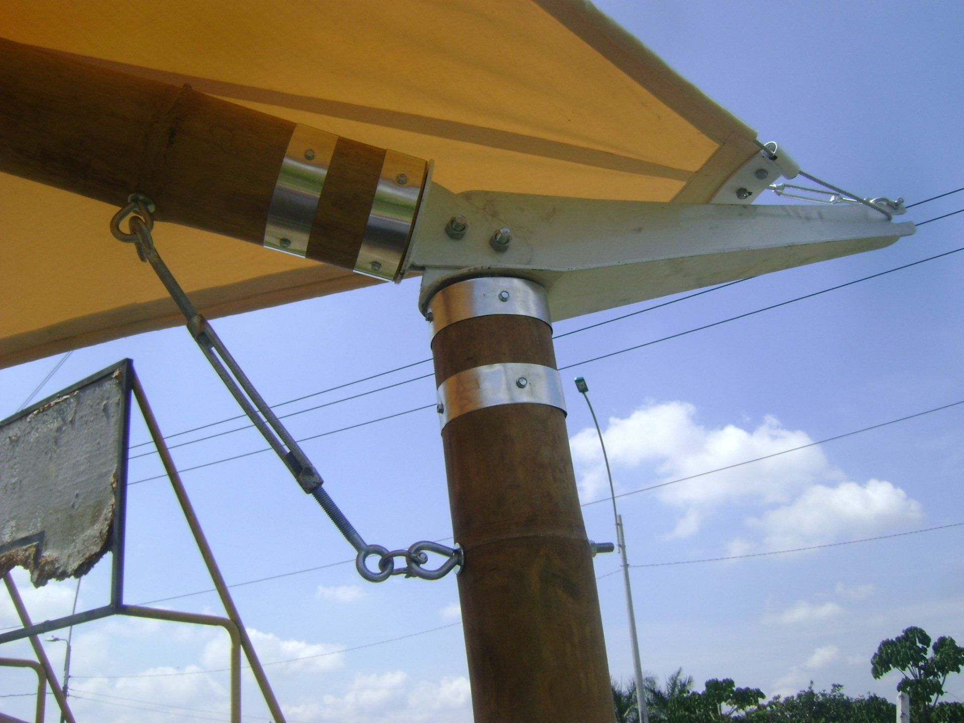 Tubería, platinas, tornillería, cables de acero, grilletes, tensores, y demás accesorios son seleccionados de acuerdo a un cálculo estructural de cargas, velocidad de vientos y estabilidad estructural condicionado al área de cubrimiento.