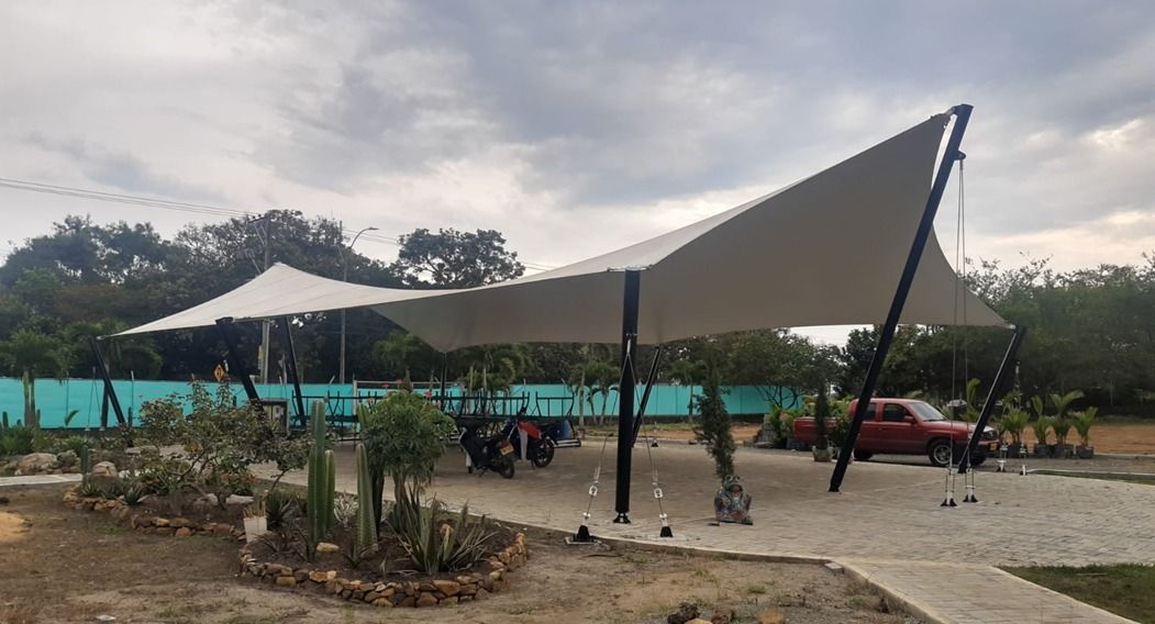 Membranas tensadas para crear formas geométricas con curvaturas ilimitadas, elevaciones y caídas coordinadas con estructuras tubulares y cables de acero, creando gran variedad de diseños y figuras modernas, que enmarca visual y arquitectónicamente fachadas, terrazas y cualquier área de cubrimiento creada para ser destacada.